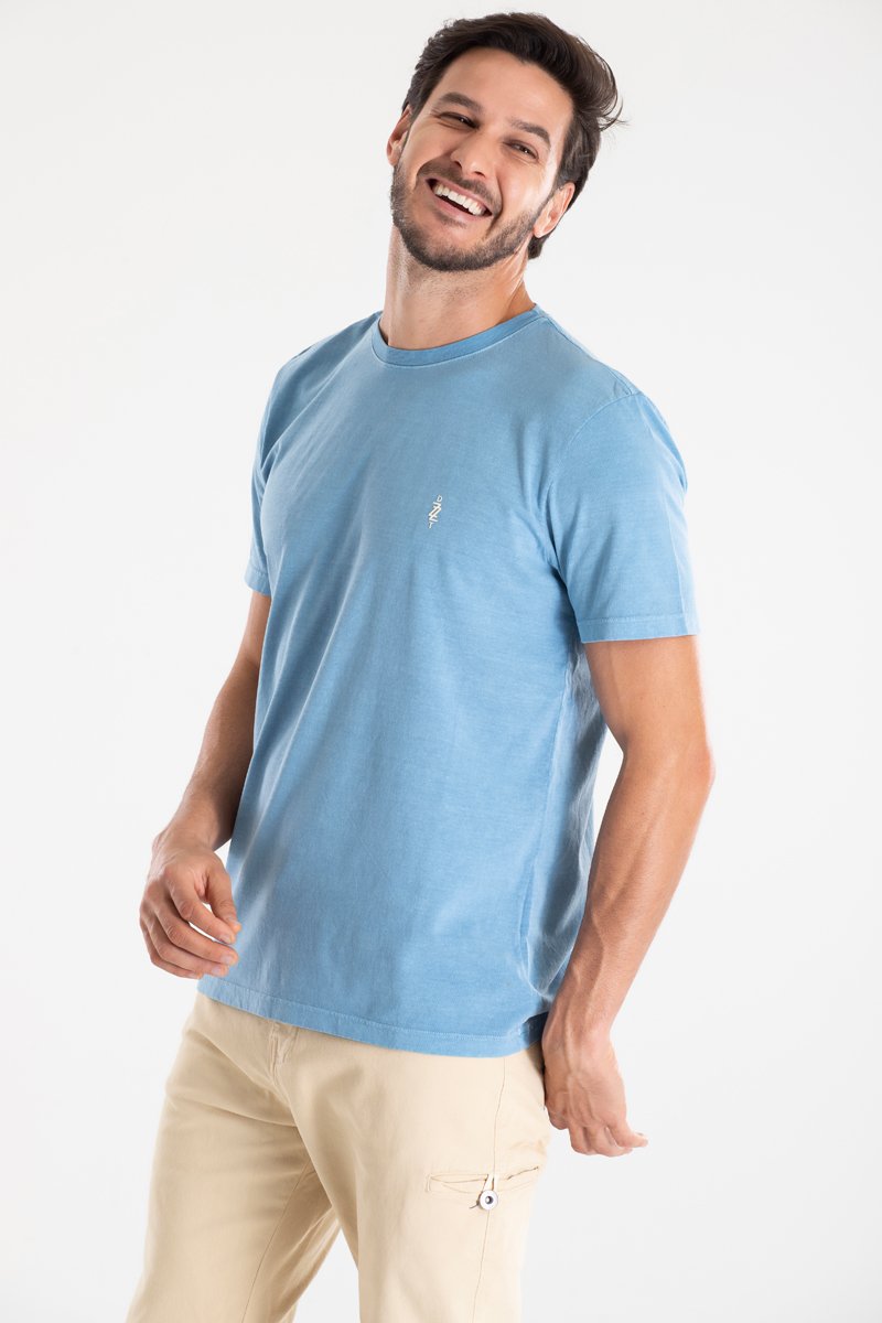 A camiseta DZZT Bahamas é desenvolvida com malha 100% algodão, tingida em técnica estonada com estabilização para não haver encolha e torção no produto após a lavagem.