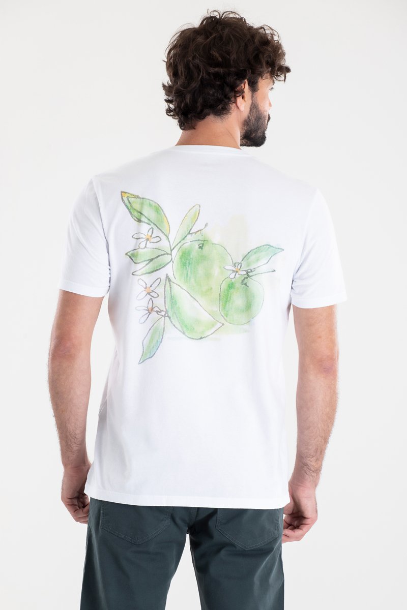 A camiseta Dzzt Rio de Janeiro traz em seu visual o frescor da combinação entre o fio de algodão, a cor branca e a estampa aquarelada em um estilo tropical.