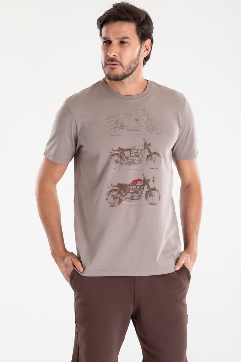 A camiseta DZZT Oklahoma tem como cor o caqui, trazendo um toque de rusticidade, combinando perfeitamente com a temática da estampa e proporcinando um visual moderno e descolado. Uma peça ideal para os amantes de motos e da atmosfera retrô da Rota 66.