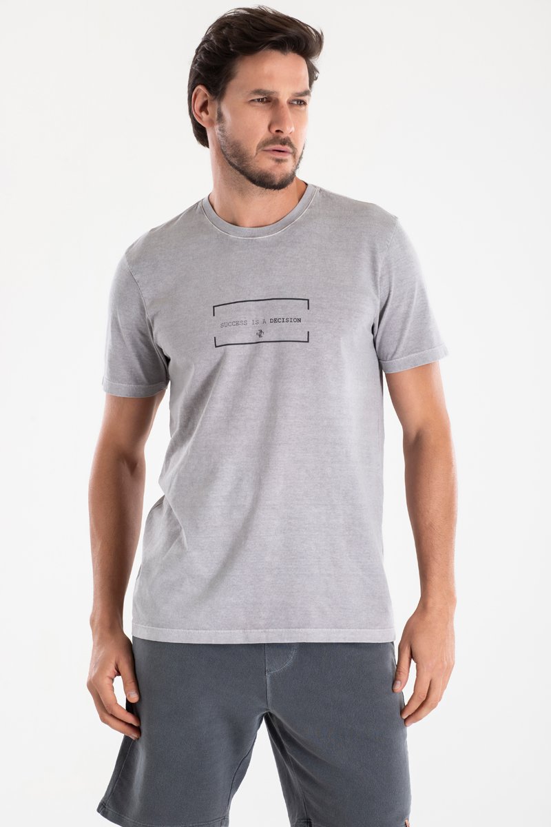 Inspirada na tendência minimalista, a camiseta DZZT Emirados traz um efeito estonado na cor cinza. A estampa com traços retos em preto compõe a peça de forma neutra, facilitando o uso com várias composições.
