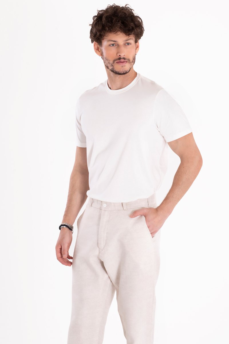 A camiseta Fio egipcio é desenvolvida com malha, tingida em técnica  com estabilização para não haver encolha e torção no produto após a lavagem.