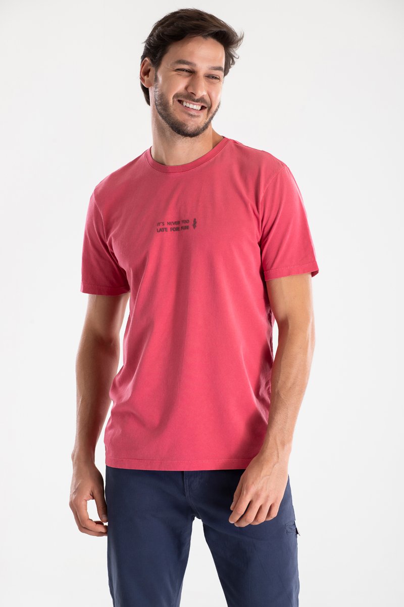 A camiseta DZZT Mônaco foi desenvolvida na cor goiaba estonado, permitindo um visual de conforto e sofisticação. A estampa, na tendência do minimalismo, com seus traços retos em relevo emborrachado, facilita o uso da peça em várias composições.