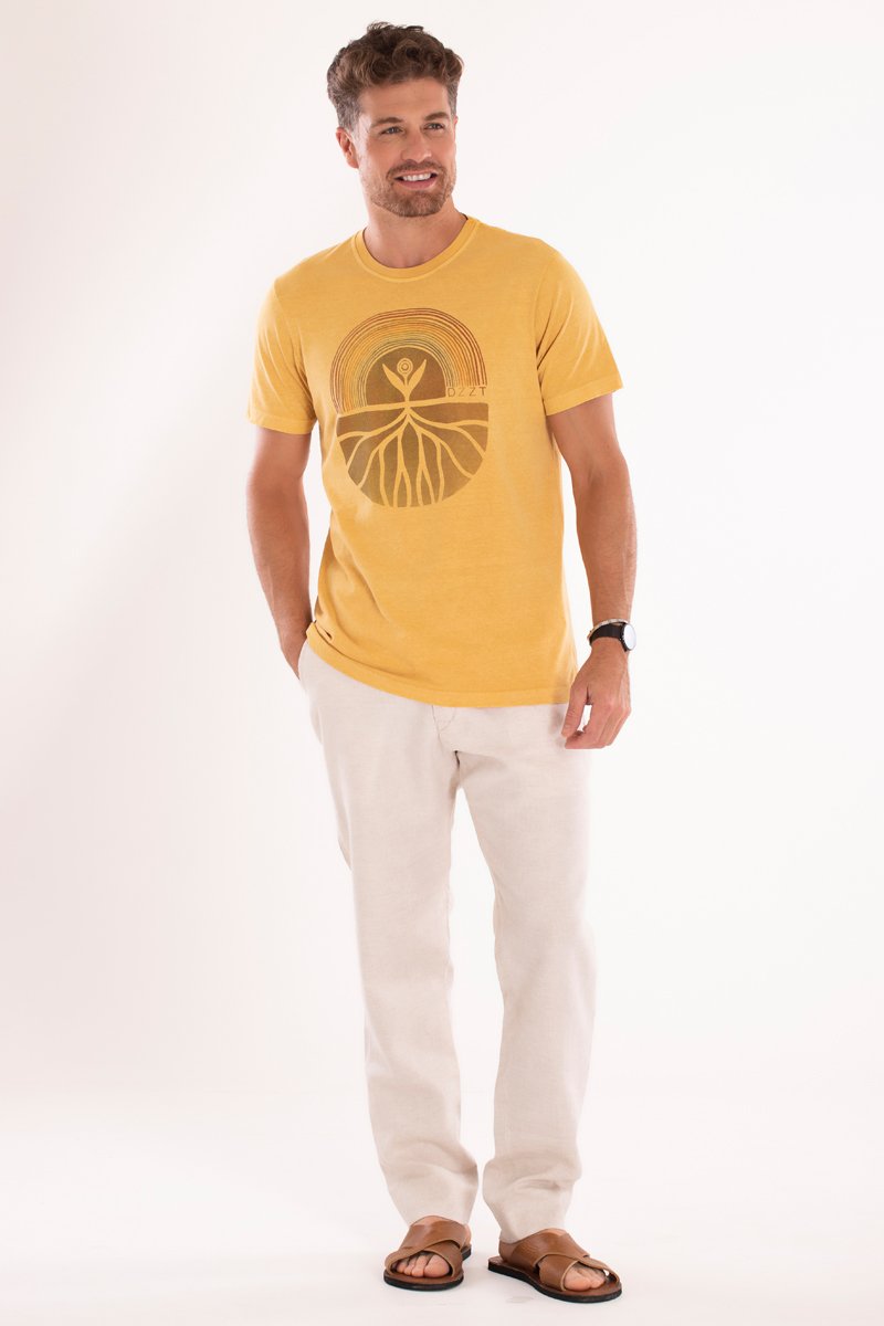 A camiseta Instambul foi desenvolvida na cor Amarelo estonado, tendo como destaque um visual desgastado e moderno.
