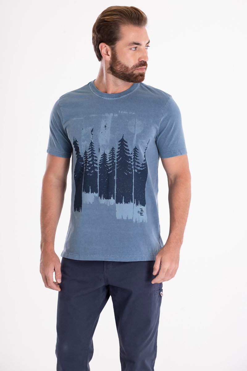 A camiseta DZZT London é desenvolvida com malha 100% algodão, tingida em técnica estonada, com estabilização para não haver encolha e torção no produto após a lavagem.