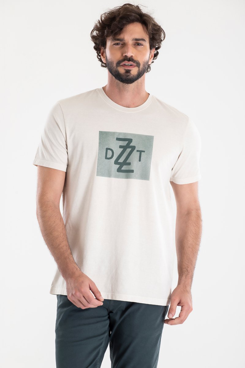 A camiseta DZZT Luxemburgo foi desenvolvida na cor natural estonado, apresentando um efeito desgastado leve. Sua estampa, localizada na frente da peça, traz como tendência a geometria 3D. Uma técnica que permite a criação de formas e volumes tridimensionais proporcionando um visual moderno.