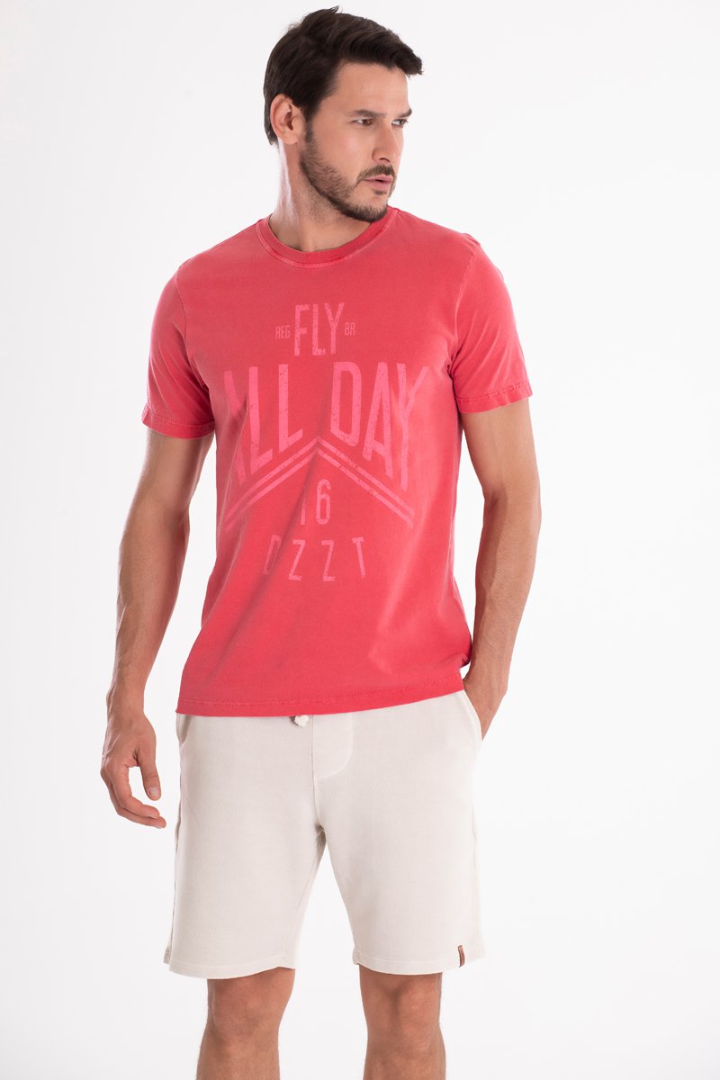 A camiseta DZZT Palermo, desenvolvida na cor vermelho estonado, confere um aspecto desgastado e envelhecido à peça.
