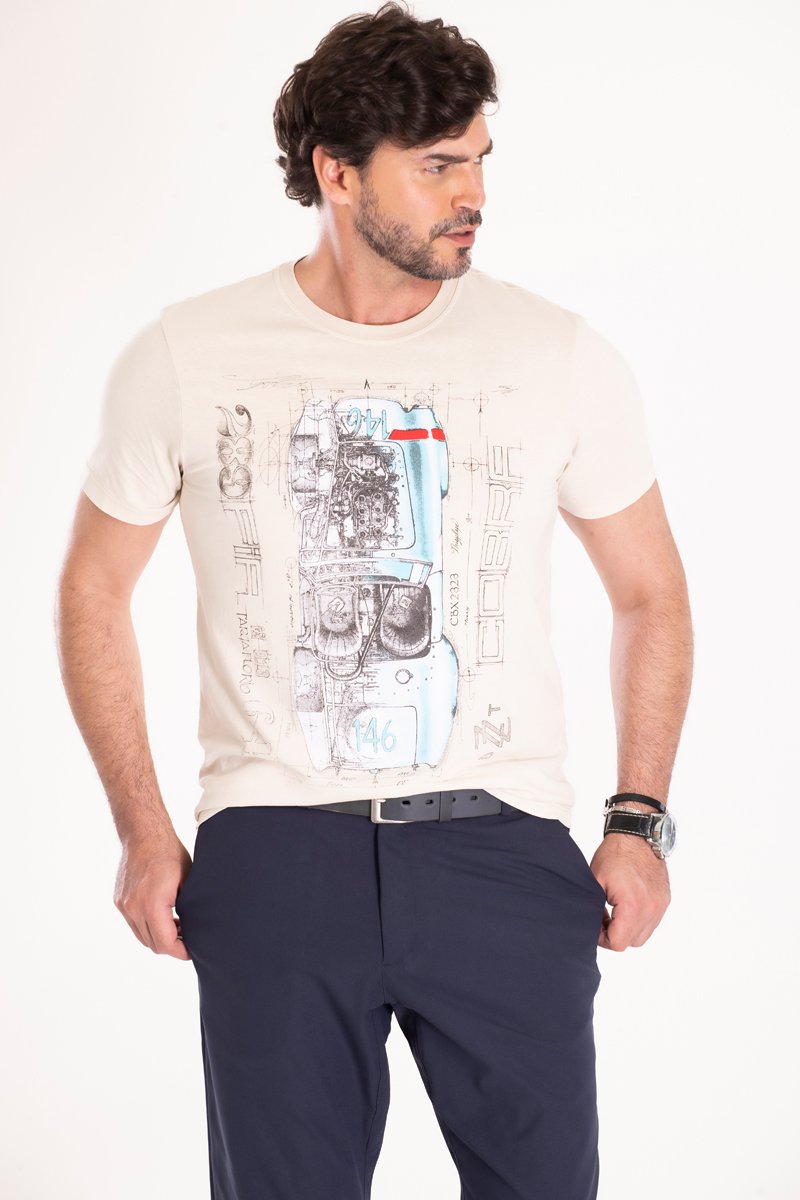 A camiseta Reino Unido foi desenvolvida na cor Bege estonado, tendo como destaque um visual desgastado e moderno.