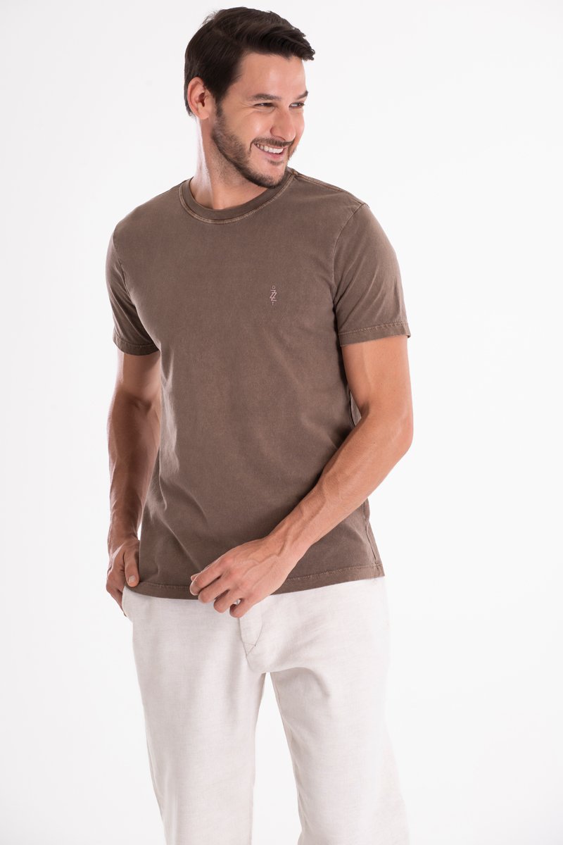 A camiseta Suriname foi desenvolvida na cor marrom estonado, tendo como destaque um visual desgastado e moderno.