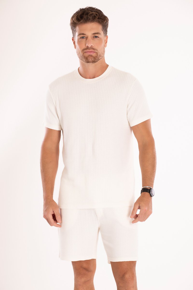 A camiseta Canbridge foi desenvolvida na cor Off White, com design moderno e acabamento diferenciado. O principal destaque da peça é a textura que imita tricot, que agrega sofisticação e identidade ao produto.