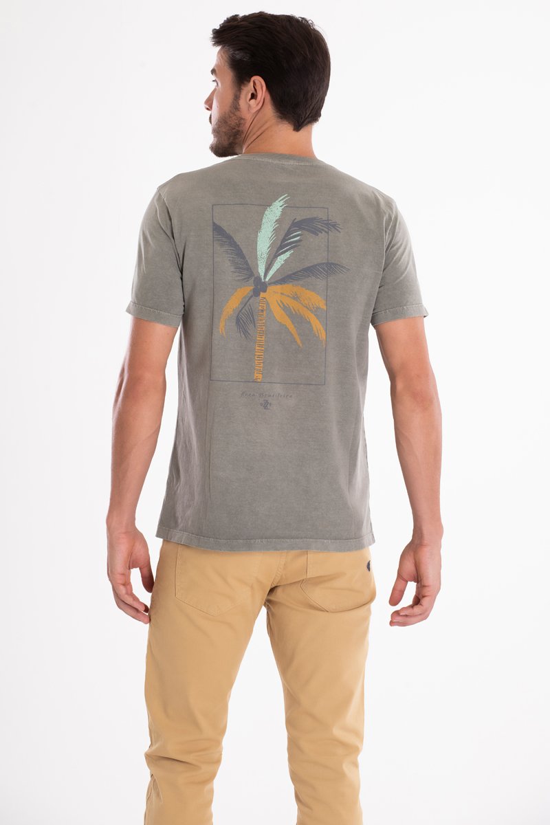 A camiseta DZZT Trancoso, desenvolvida na cor chumbo estonado, comfere um aspecto desgastado e envelhecido à peça.