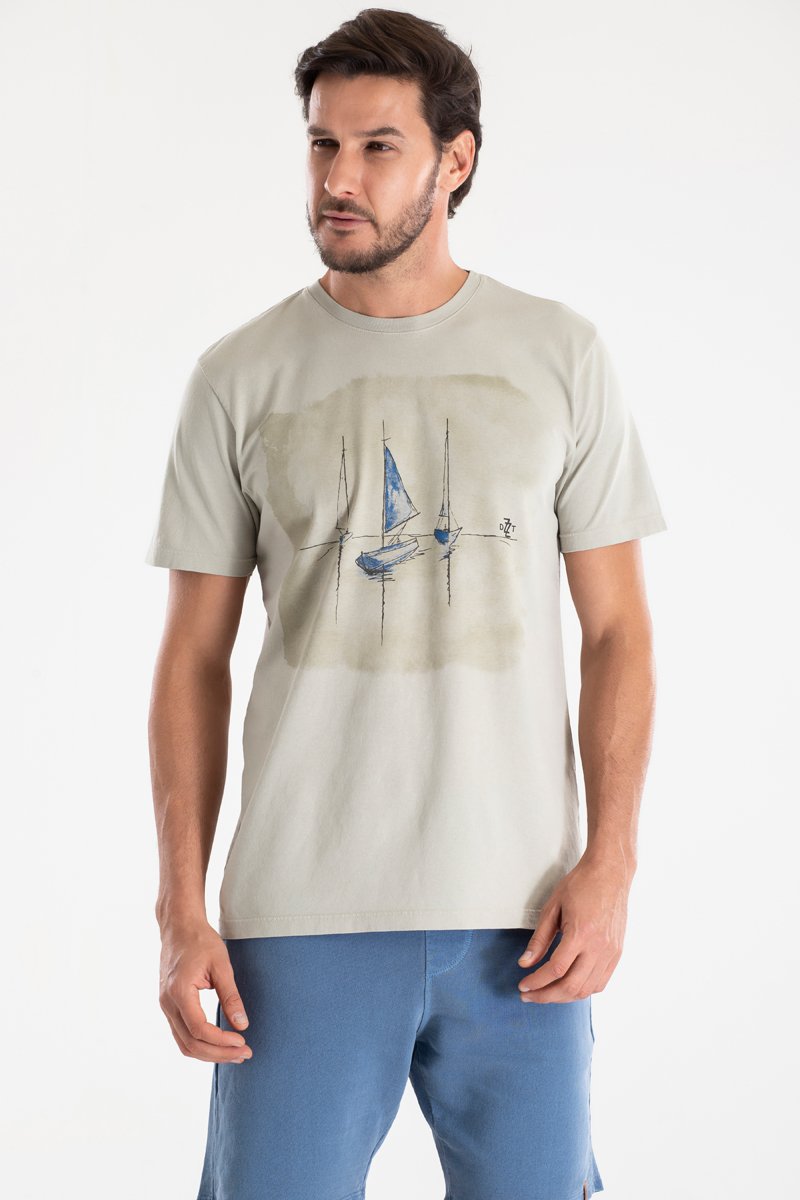 A camiseta DZZT Recife apresenta uma combinação de cores leves trazendo um ar de sofisticação e estilo para a peça. Para compor a idéia, uma estampa aquarelada com barcos a vela como se fossem pintados à mão.